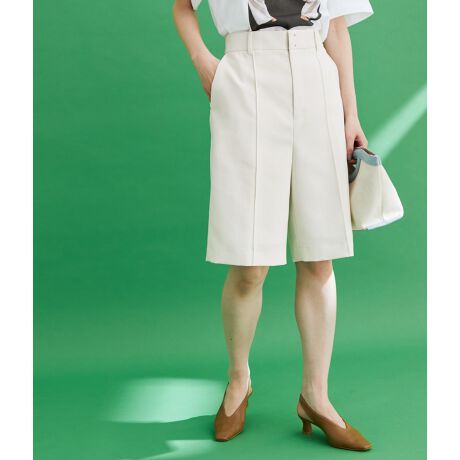 【《環境配慮》ハイウエストデザインなら脚長効果も狙える。こだわりのシルエットが、大人っぽく洗練されたムードに仕上げてくれるハーフパンツ】
