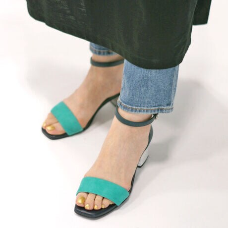 デザインは綺麗なターコイズブルーで、ヒールが大理石という尖ったデザインでとても良かったです。