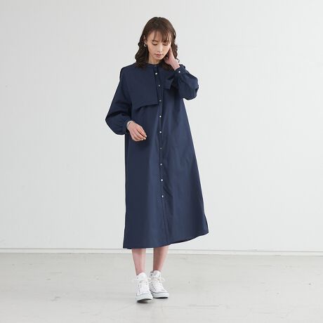 セーラーカラーのような大きなヨークがポイントのシャツワンピース。