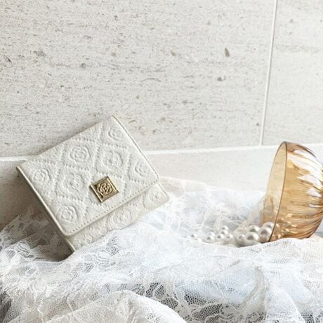 [型番:189251]このシリーズのために特別にデザインした柄を、イタリアの牛革に型押ししました。ベーシックで飽きのこないデザイン”フリーズ”。キラキラの極小ビジューのついたブローチが、乙女心をくすぐるアクセント。ふっくらとした手触りと、軽やかな仕立てがこだわりです。【製品寸法】F : 縦:9.5, 横:10, 幅:2.5【素材】牛革【メーカーサイズ寸法(実寸)】F : よこ:10cm