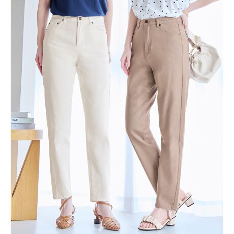 抜け感のある丈と、足首にかけて細くなる美脚シルエットですっきりとした印象に。