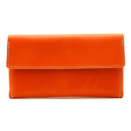 『ネオギャルソン』は従来の『ギャルソン長財布』の機能や魅力はそのままに、よりコンパクトにデザインした新しい長財布です。コンセプトは『ポケットに収まるギャルソン財布』。一番の特徴は「大きく拡がる小銭ポケット」。通常の財布に比べ、ガバッと拡がり中の小銭が取り出しやすくなっています。30枚程度の小銭を収納する事が出来ます。小銭が端から飛び出すのを防ぐため、四隅はカシメで固定しました。これにより、マチが外側に飛び出してくることなく安定した形状をキープします。かさ張るカード類は、革に「切り込み」を入れた「カードスリット」で縦向きに収納します。カードの上半分が見えるので パッと見で選びやすく、カードの種類が一目瞭然で分かります。スリットの数は片側5箇所。計10枚のカードが、等間隔に綺麗に配列されるスリットです。さらに背面のフリースペースにはカード5枚が程度、全体で約15枚のカードが収まります。本体横幅は170ミリ、1万円札とほぼ同等の大きさで、〜15枚程度のお札が収納可能です。左右を敢えて縫わずに、革をふんわりと折り込む構造することによりゆとりが生まれスペースを確保しています。カード15枚、小銭30枚、お札15枚が入る設計です。これだけの量を収納しても厚みは約2.5cm。シンプルな構造にすることで革の重なりを抑え、薄さを実現しています。増減する容量に対応できるように、フラップは2段階調節にしました。