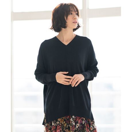 【WEB限定カラー有/洗える】コットンアセテート チュニック丈ニット