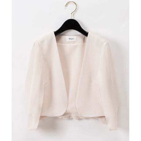 非常に軽く、さらりとした着心地が魅力の、毎シーズン大人気のボレロジャケット。後ろはふんわりとしたバルーンシルエットで、バックスタイルも抜け目なく印象的に仕上げました。顔周りをすっきり見せるノーカラーや無駄を省いたミニマムな一品は、ドレスの邪魔をせず様々なアイテムと相性良く着合わせる事が可能。腕が隠れるボレロ風のデザインで、オケージョンシーンに頼れる一着です。