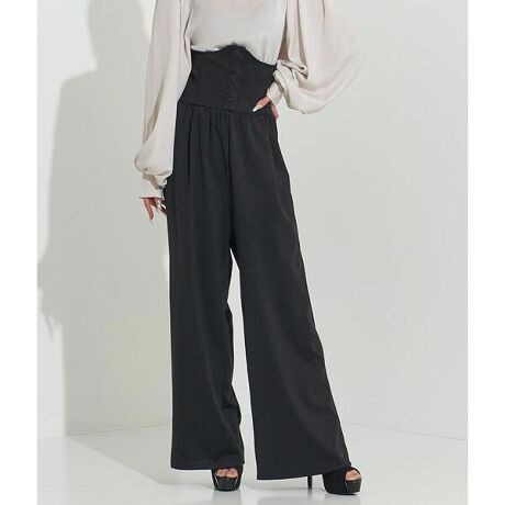 キュッと引き締まったウエストに見せてくれるコルセットワイドパンツ。