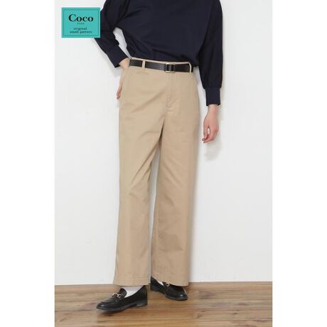 ポケットや後ろのミニベルトなどチノパンらしいカジュアルディテールとステッチを効かせて、きれい目の素材をカジュアルに仕上げました。