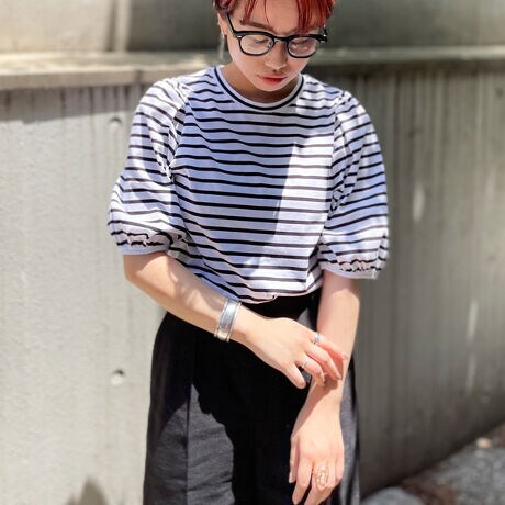 五分袖なので長い期間着用できそう。ボーダーの幅が細かく角度によっては少し目がチカチカします。