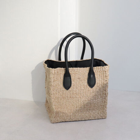 ・アバカ編みと牛革のハンドルが大人カジュアルなコーデを高めます
