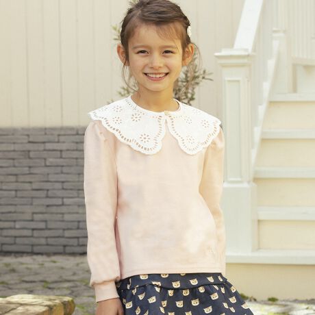 パンチングレースの大きな付け襟が華やかに仕上げてくれるスウェットトップス。