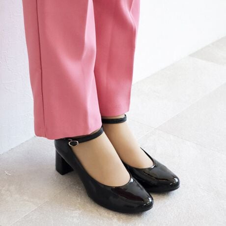 日本製のラウンドトゥのストラップ付きパンプスです。