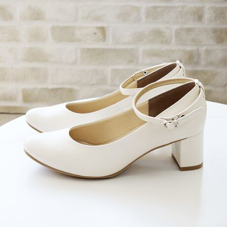 日本製のラウンドトゥのストラップ付きパンプスです。