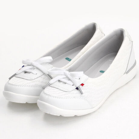 歩きやすいシューズを目指したフラットパンプスモデル。薄底の欠点を考慮し、硬度の異なる異なる反発材を組み合わせた「ダブルコンフォートインソール」を搭載し、包み込むようなコンフォート性を追求しました。夏のシーズンに合わせて清涼感漂うメッシュ素材を採用しました。