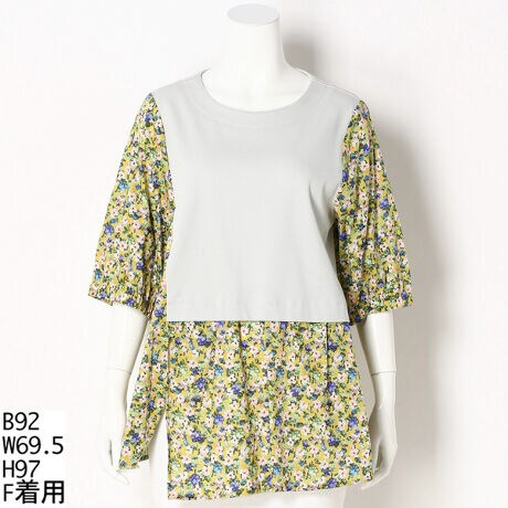 リバティプリントと伸縮性のよいニット素材を使ったコンビチュニック。