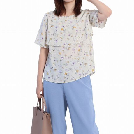 【M〜5L】【fleur】【mintbreeze】花柄 ジョーゼット ティアード風 ブラウス
