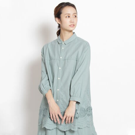 アーティストコラボ コットングランジ「うつし鏡の白鳥」ケミカルレース刺しゅうチュニックブラウス