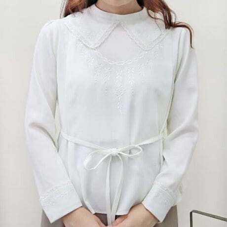 同色刺繍衿付きプルオーバーブラウス【洗える/襟取り外し可能】