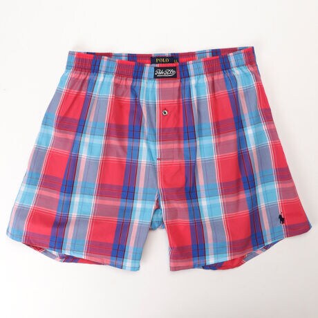表面がなめらかで光沢のあるコットン100%の平織生地のトランクスです。オーセンティックなチェック柄で、フロントセンターに縫い付けたラベルと、左裾に入ったブランドアイコンのポロプレイヤー刺繍がポイントです。ロゴ刻印入りボタンでさりげないこだわりを表現。前開き仕様。