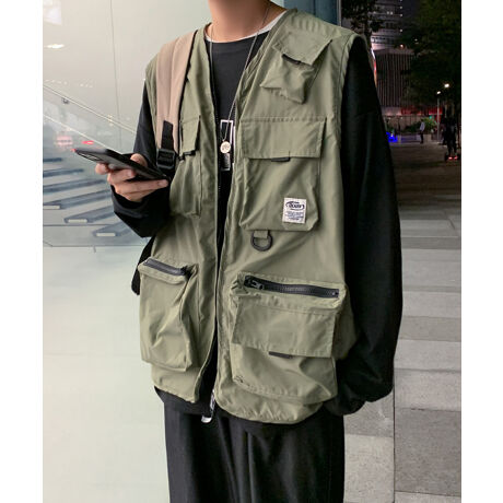 収納力抜群のタクティカルポケットに加え、ウエストを絞らない流行のボックスシルエットのジレ。