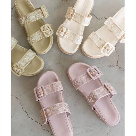 <22春夏新作>【22.5-25.5】ストレスフリー/シアーフラワー刺繍スポーツサンダル