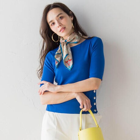 一枚で完成度のあるプルオーバーは5分袖にしているので長いタームで着られる万能ニットです。釦は本明きなので合わせるボトムによって調整して着こなすことができます。シンプルですがシルエット・ディティールにこだわった一枚です。5色展開とカラバリ豊富なのも嬉しいポイント♪