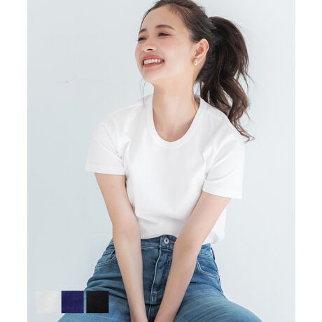 ほんのり前下がりのついているネックラインが、Vとクルーネックのいいとこ取り!