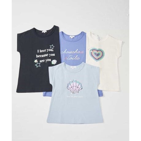 ・ネイビー・・・ロゴプリントとスパンコールのモチーフ。