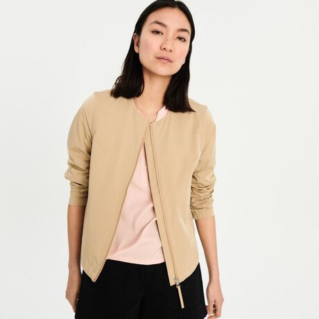 エーグルの撥水 ストレッチ ノーカラーブルゾン。