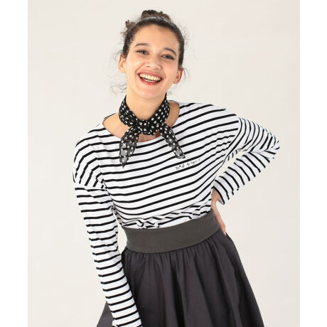 少し肩落ちしたシルエットやボートネックのデザインは、ベーシックながらおしゃれ度がアップする一枚。