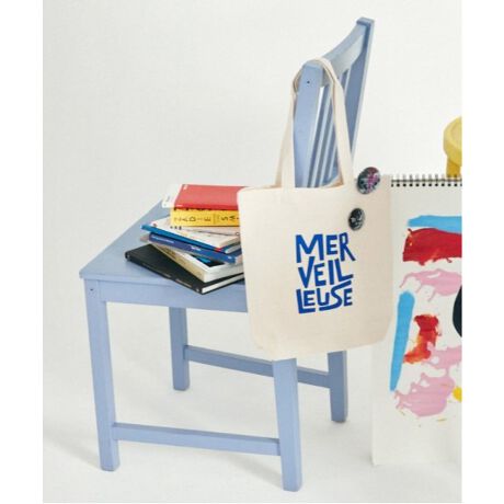 アニエスからの仏語のメッセージ【Merveilleuse(最高に幸せ) 】をグラフィックに落とし込んだトートバッグです。