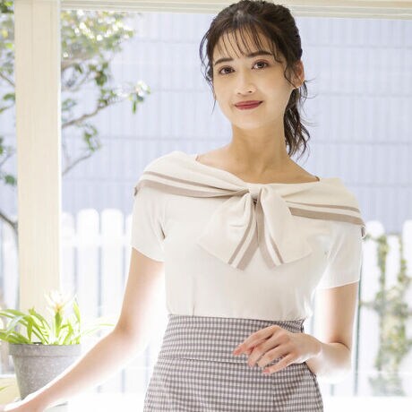 リボンモチーフをあしらったセーラーカラーが特徴のニットです。