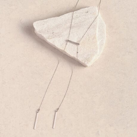 華奢なチェーンとエッジの効いたバーモチーフが首もとをモダンに仕上げます。