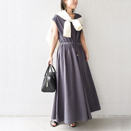 ・センターフロントのタックデザインが大人ぽい印象を与えるカットワンピース。