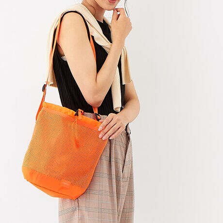 バッグ全体にメッシュ素材を採用した見た目にも涼しげなカジュアルシリーズです。内装にPVC加工したナイロンリップストップ素材の収納スペースを取り付けることにより、湿ったものと乾いたものを分けて収納できる仕様で、特にレジャーシーンでの使用に機能を発揮しつつタウンユース機能も十分に持ち合わせているのが最大の特徴です。本体生地は厚手ながらも直接肌に触れても痛くない肌触りの良いオリジナルのポリエステルメッシュ素材です。ビーチやプールなどの夏のレジャーシーンで濡れたものや汚れたものを収納するのに最適で、普段使いにおいても折り畳み傘やペットボトルなどの収納にも適しています。また背面にも同様のメッシュ素材を配しており、背負った際の通気性の良さもメッシュバッグならではで、近年の猛暑の中で比較的涼しく使用できることも重要な機能の一つとなっています。