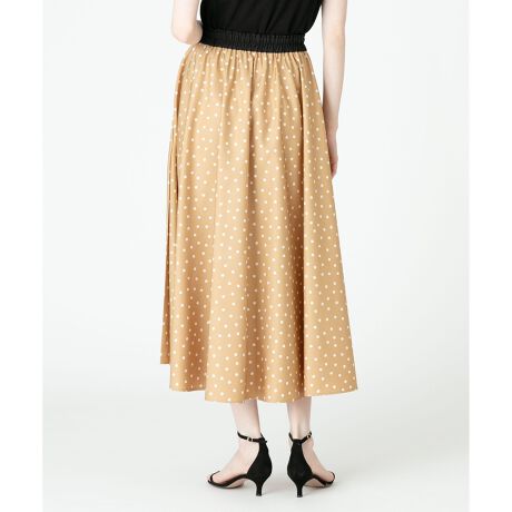 軽やかなドットが可愛らしい表情を見せてくれるフレアギャザーロングスカート。ハリのある美しい風合い、華やかに広がるシルエットが印象的なアイテムです。薄手のカットソーなどとシンプルに合わせるだけでも洗練コーデに!