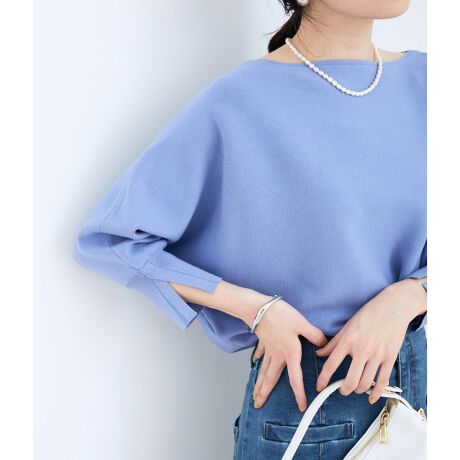 ボートネックのシャープさは上品で大人っぽい色香を演出します。