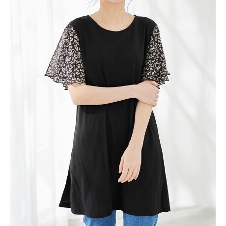 【suzu salalaシリーズ】ひらり!シフォンの2枚袖にこなれ感漂うデザインチュニック。