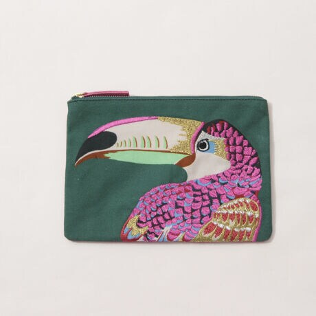 ・ポーチ一面に施されたアニマルの刺繍が可愛いポーチ