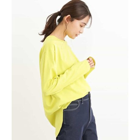 ゆったりとしたサイズ感がカジュアルな気分にぴったりなカットソー。ヒップまでしっかり隠れる着丈はマキシスカートにあえてインせずにラフに着合わせたり、パーカーやニットの裾からちらっとのぞかせても可愛い。