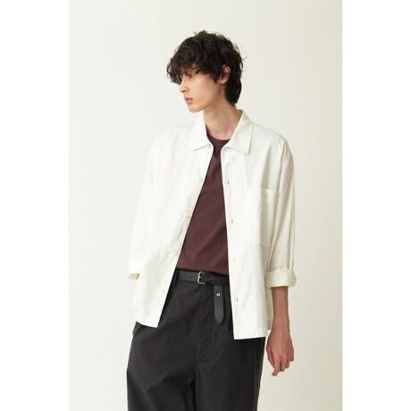 しっとりした風合いとカジュアルな肉感を併せ持ったコットンリネン素材を使用したシャツ。特徴的な衿がポイントで、第一釦まで閉めるとアシンメトリーな衿型に、第一釦を開ければオープンカラーのように着用することが出来るデザイン。