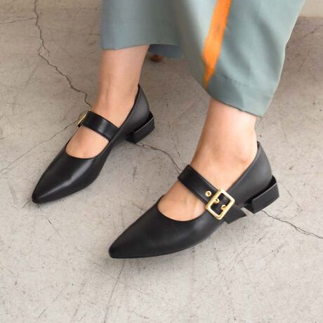 ポインテッドバックルベルトパンプス