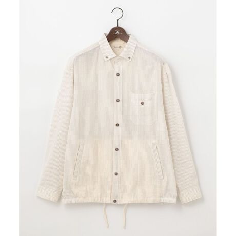 ■アイテム説明さらさらした風合いとシャリ感が特徴的な清涼感を感じて頂けるサッカー生地を使用したシャツブルゾンです。タテ糸にOG糸を使用しワッシャー加工で糸の縮む力を利用し生地に凹凸感を出し肌に接触する部分が少なくなる為暑い時期でも肌離れが良く快適な着心地を感じて頂けます。