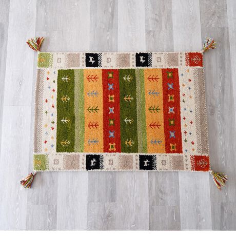 ギャッベ 玄関マット 通販 60x90 手織り ギャッベ ハンドノット 60 90 室内 おしゃれ マット アクセントマット エントランスマット 黄色 イエロー グリーン 緑 カラフル 柄 インテリア 生活雑貨