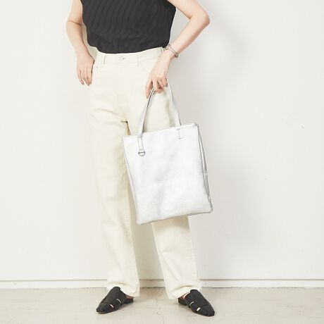 すっきりしたフォルムとフェイクレザーを使用しているので、スタイリッシュな印象のバッグ。