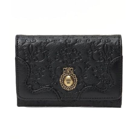 ヴィンテージ風のレザーにエンボスを施したシリーズ。アンティークメタルで一層ヴィンテージ感のあるデザインに。小さなバラ型の口金もポイントのひとつ。裏地には今季の花柄を使用して色鮮やか。長く使うほどに味わいが出るシリーズです。裏地には、今季のオリジナル花柄を使用。開けたときの華やかさも気分が上がります。