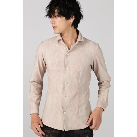 ハイテンション素材を使用したデニムプリントシャツ。抜群のストレッチ性が快適な着心地を生んでいます。襟は新型のショートウィングカラーを採用。ややV字の開きにすることですっきりとした首元を演出いただけます。衿には形状保持芯を入れ、自由にアクセント付けできる仕様に。18ミリのボタンを使用し、インナーシャツとしてもブルゾンライクな軽い羽織シャツとしてもお使いいただけるように仕上げています。