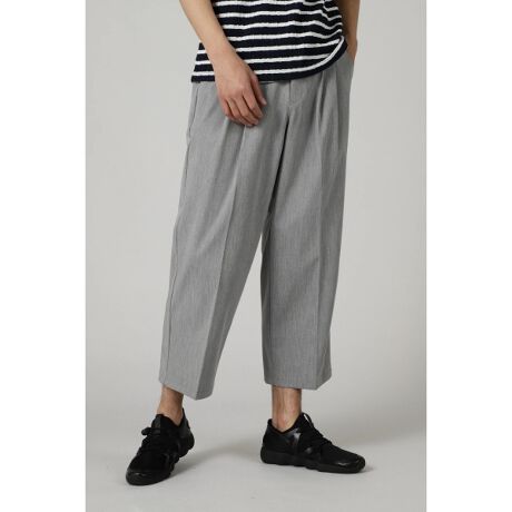 ドライギャバで仕上げたイージーワイドパンツ。2タックとウエスト部分のゴム仕様でたっぷりとした腰回りのシルエットに、ワイドシルエットながらもアンクル丈にすることで重たくなりすぎない、リラックス感を持たせています。さらりと落ち感のある素材感も魅力で、ストレッチ性もある為着用感にも優れた一本です。