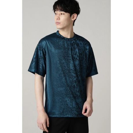 クルーネックのオーバーサイズでトレンド感はありながらも、プリントではなくダブルジャカードの編地表現で魅せた一枚。