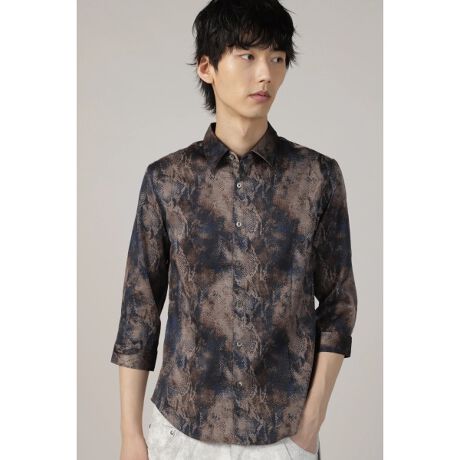 パイソンプリントの7分袖シャツ。