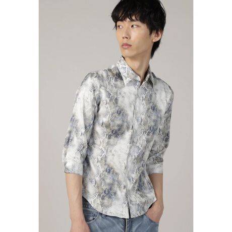 パイソンプリントの7分袖シャツ。
