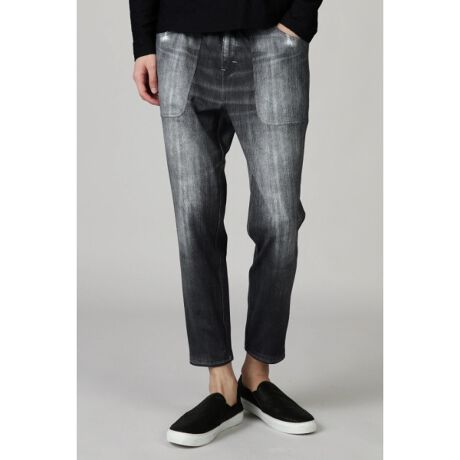 リアルなデニムをプリントし、加工感等も表現された一枚は、その表情から想像できないほどの伸縮性を兼ね備えています。